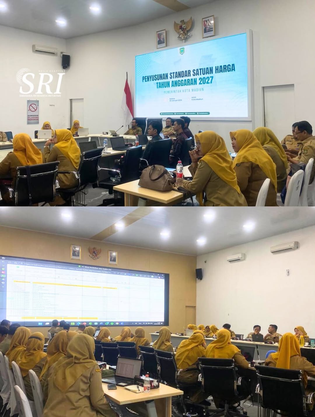 DALAM rangka penyusunan Standar Harga Satuan (SHSBK–ASB–HSPK) Kota Madiun Tahun Anggaran 2027, Swasaba Research Initiative (SRI) memberikan asistensi kepada seluruh Organisasi Perangkat Daerah (OPD) Kota Madiun. Kegiatan ini dilaksanakan di Ruang Rapat Government Chief Information Officer (GCIO) Kota Madiun, Selasa (10/1/2026).